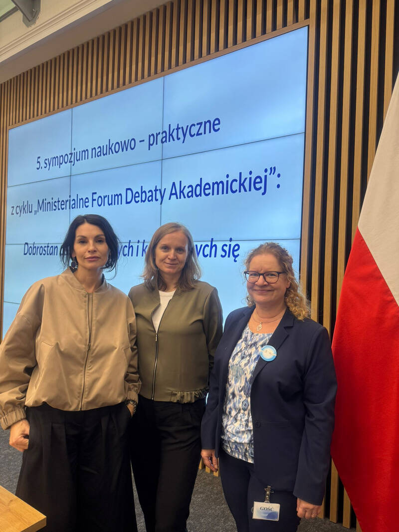24 listopada reprezentacja Równej PWr - Prorektorka ds. rozwoju i integracji wspólnoty, prof. Karolina Jaklewicz, pełnomocniczka Rektora ds. dostępności, prof. Katarzyna Jach oraz kierowniczka Działu Szkoleń i Rozwoju Wspólnoty, Aleksandra Tomaszewska - wzięły udział w sympozjum pt.: "Dobrostan osób pracujących i kształcących się w systemie szkolnictwa wyższego i nauki" zorganizowanym przez Ministerstwo Nauki i Szkolnictwa Wyższego w Warszawie.